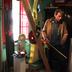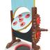 5 Guarda che so, 2015, ( con dettaglio dell’interno) cono di legno intagliato, stuccato e dipinto a mano, con visore, mezzo busto di bambola vintage e luce interna, 130 x 50 x 50 cm